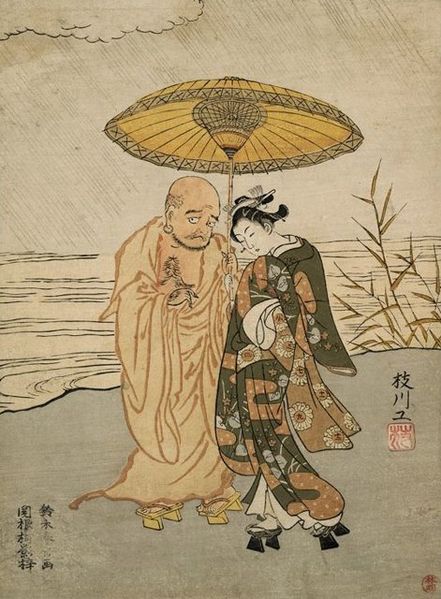 “Daruma and a Young Woman in the Rain”, woodblock print by Suzuki Harunobu, 1765 from the Clarence Buckingham Collection.