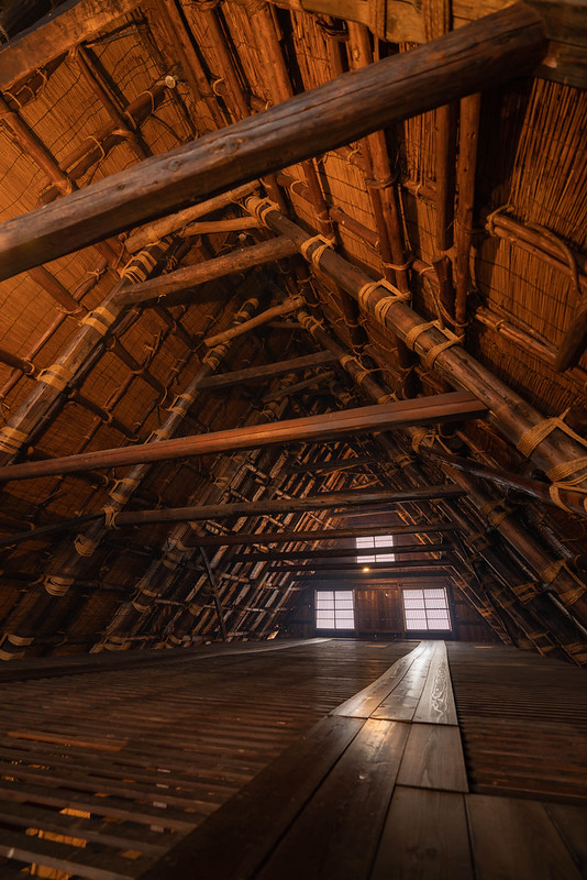 The characteristic feature of the traditional homes are thatched triangular roofs. Gassho- zukuri, or “constructed like hands in prayer,” is characterized by vast roofs. They were constructed with steep, thatched roofs that resembled Buddhist monks’ hands pressed together in prayer. The architectural design developed through the years to withstand heavy amounts of snow that beset the region each winter. The gassho-zukuri roofs were timber-framed–made without nails–to allow for a much larger attic space used, for example, to cultivate silkworms.